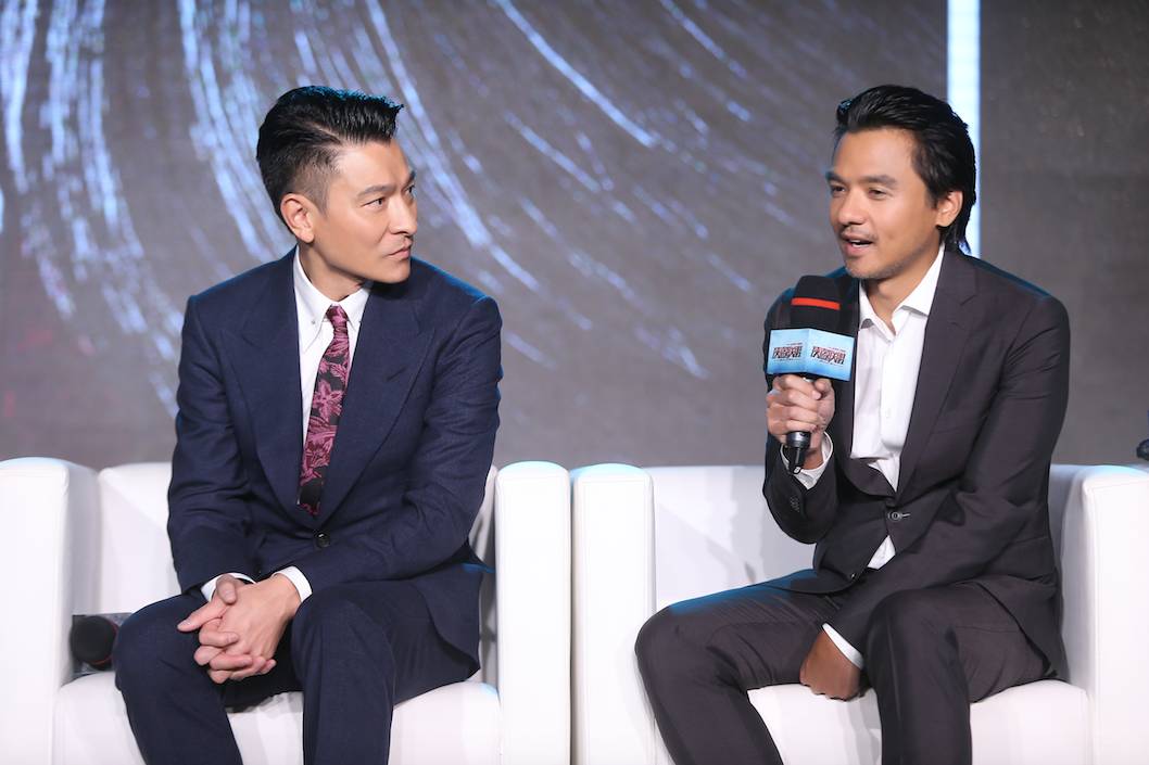 電影中,大盜張丹與警察皮埃爾的關係如同"貓與鼠",二人持槍互相指頭,氣氛緊張。談到這場戲的設定,導演馮德倫表示是專門為了觀眾的觀感而設計的,"亞洲天王和歐洲天王的對立,一定會很過癮"。隨後,兩人在現場重現了這段火花四濺的對陣情景,讓到場觀眾提前感受到影片裏二人針鋒相對的精彩戲碼,帥氣的姿勢徹底引爆了現場。