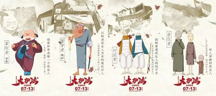 此外,導演還在片中設置了把花生人當做豬玀的掌權者吉安姥爺、將一刀取人心髒作為理想的屠宰者庖卯、幫助吉安殺死自己人的行法者,甚至以權力為目標、把恐怖果實獻給太子的小孩子……這些配角無不是人類社會裏最黑暗的縮影。
