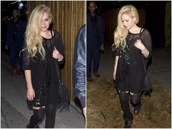 台灣時間4日,艾薇兒也被拍到和音樂製作人J.R. Rotem出現在西好萊塢街頭,整個人看起來氣色很好,有著圓潤的臉蛋,維持一貫的打扮風格,穿得一身黑,洋裝上頭印著骷髏圖案,蕾絲內衣若隱若現,頂著一頭金色長髮,女人味十足,不時對著鏡頭微笑,少女般的臉龐讓許久沒看到她的粉絲驚呼,「根本和以前長得一樣」、「好開心你恢複健康」。