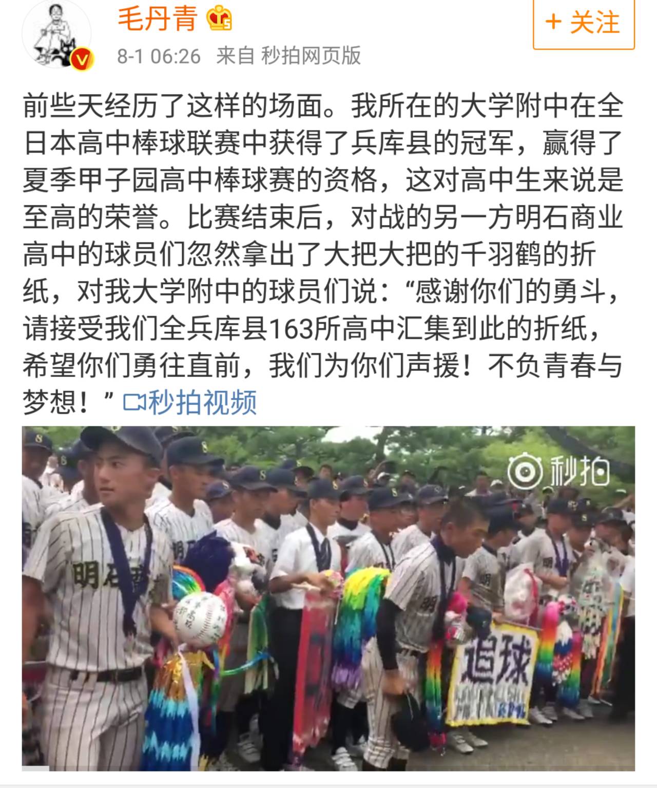 上麵毛丹青老師的這條微博中說到的畫麵是不是很有漫畫情節的感覺?然而它卻是真真切切發生著的。對於絕大多數日本高中男生來說,甲子園有著非凡的意義,代表了他們拚搏過的青春,能夠打進甲子園或許是一生的榮譽,即使沒有進入全國大賽,這種為一件事全身心努力的經曆也可以收獲了一生的財富。