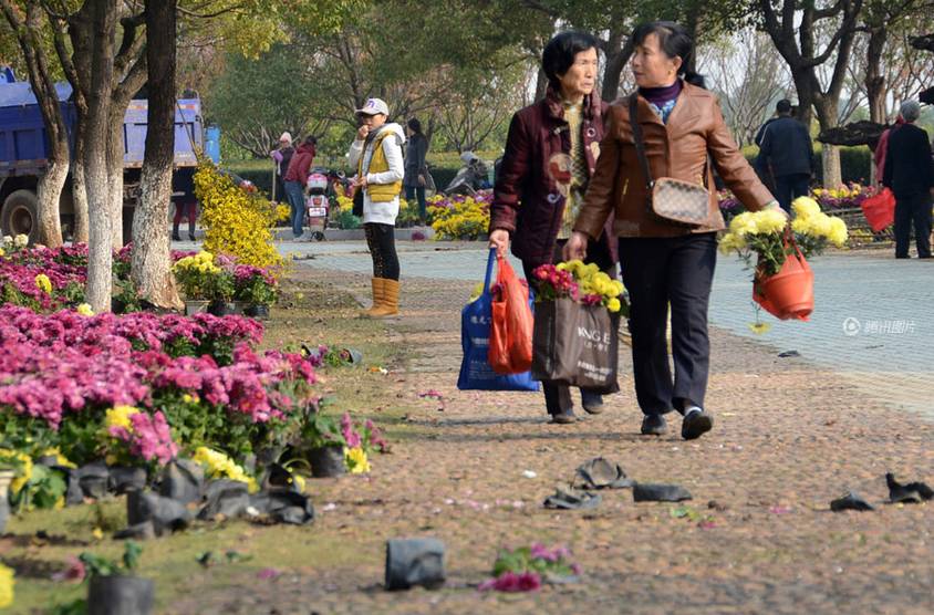 2012年11月27日,江西南昌,為期20天的菊花展正式結束。菊花撤展中遭市民哄搶。 圖片:東方IC