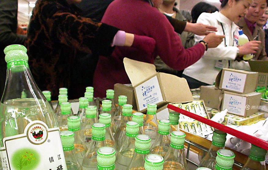 2003年,非典肆虐,關於白醋能抗非典病毒的流言四處傳播。圖為2003年4月24日,南京一家超市,白醋遭搶購。圖片:AFP