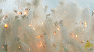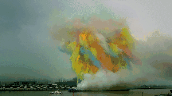 除了架上繪畫係列,其他的火藥作品基本都是生產即毀滅的,留存下來的方式隻有圖片與影像紀錄。