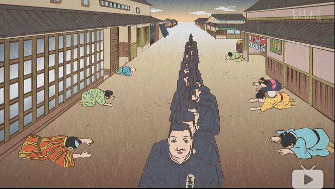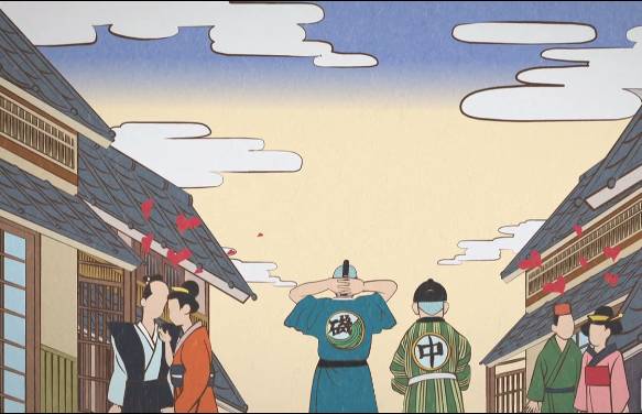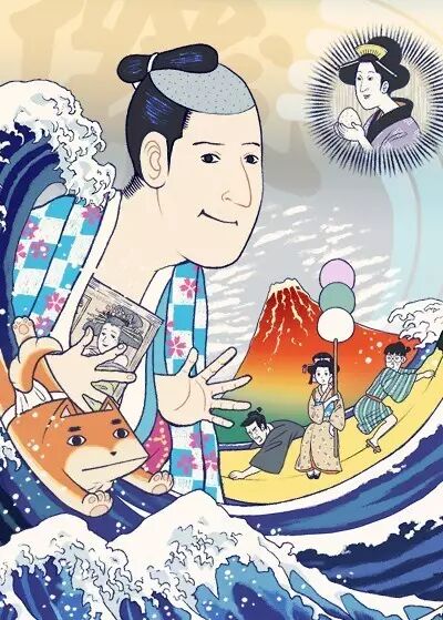 插畫隻能以靜態的形式再現浮世繪,而動畫番《磯部磯兵衛》的每一幀截圖,都可與浮世繪描繪的風景、人物比擬。交織了浮世繪風格、異次元劇情、表情包等多重流行文化元素,可以說,《磯部磯兵衛》是浮世繪的二次元打開方式,是當下日本社會一隅的"世風民情的寫照"。