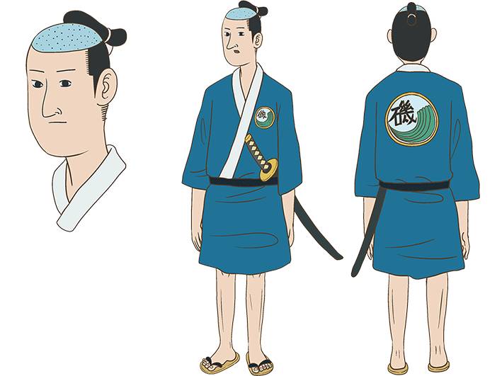 ▲ 磯部磯兵衛,一位疲於浮世的沒幹勁武士,漫畫中是武士學校的一年級。理想是當一名出色的武士,但很少真正努力,常常三分鍾熱血;喜歡團子店的服務員小妹卻沒能表白呢。