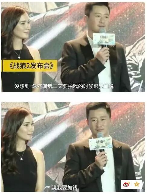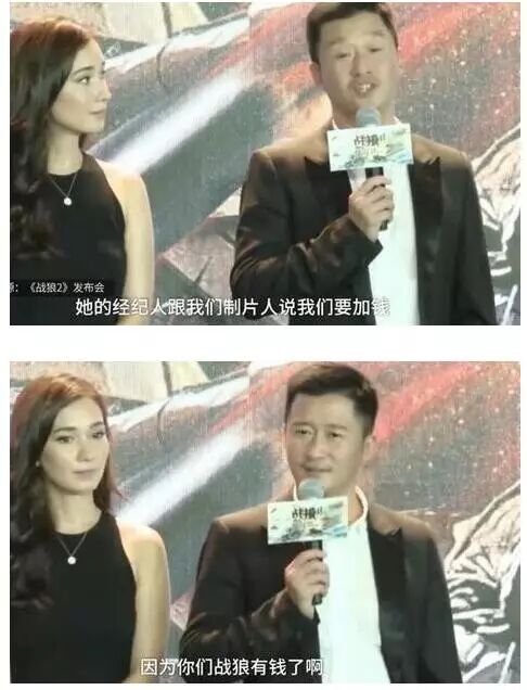"她的經紀人跟我們的製片人說要加錢,不加錢就不來,她們說因為你們《戰狼》劇組有錢,我們要加價。"