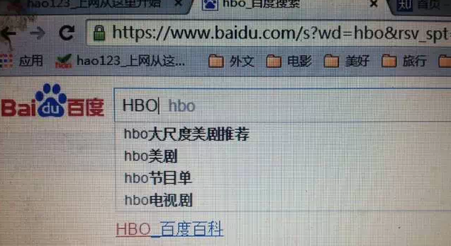 自動跳出來的第一條搜索句為"HBO大尺度美劇推薦"