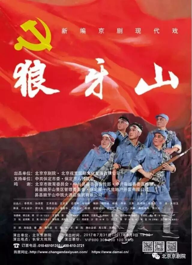 2017年7月31日晚,新編京劇現代戲《狼牙山》在長安大戲院正式公演,這出由北京京劇院重點打造的年度大戲,終於在"八·一"前夜在北京公開亮相。北京市教育委員會組織北京各區縣中小學、在京高校部分學生觀看公演。
