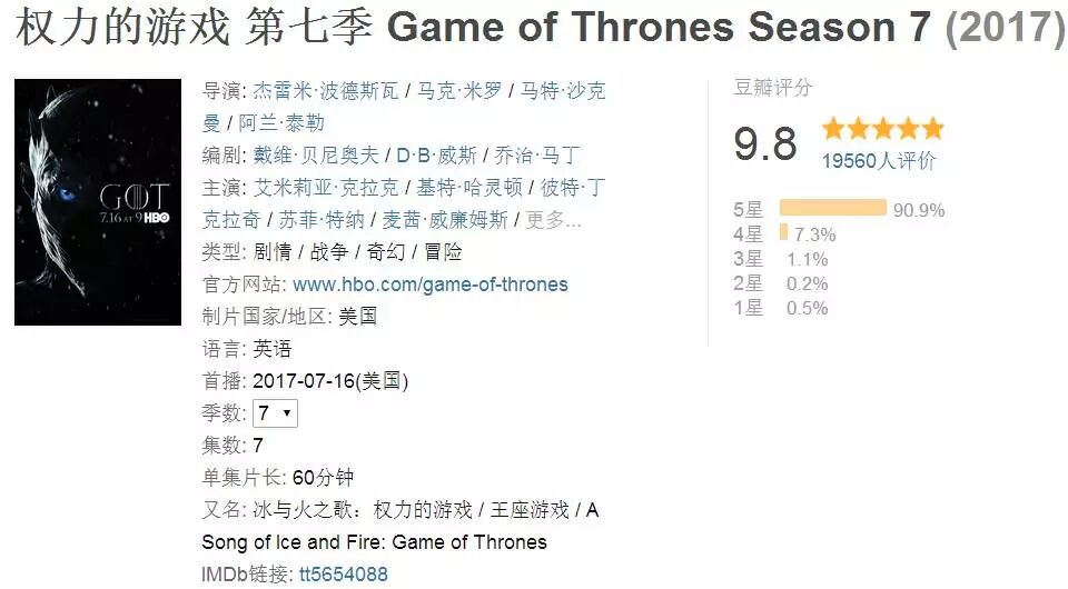 自從《權力的遊戲》回歸後,一直高居9.8分。
