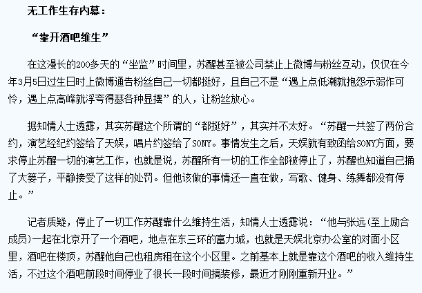 反正最後的後果就是蘇醒被經紀公司和唱片公司聯合封殺200天。
