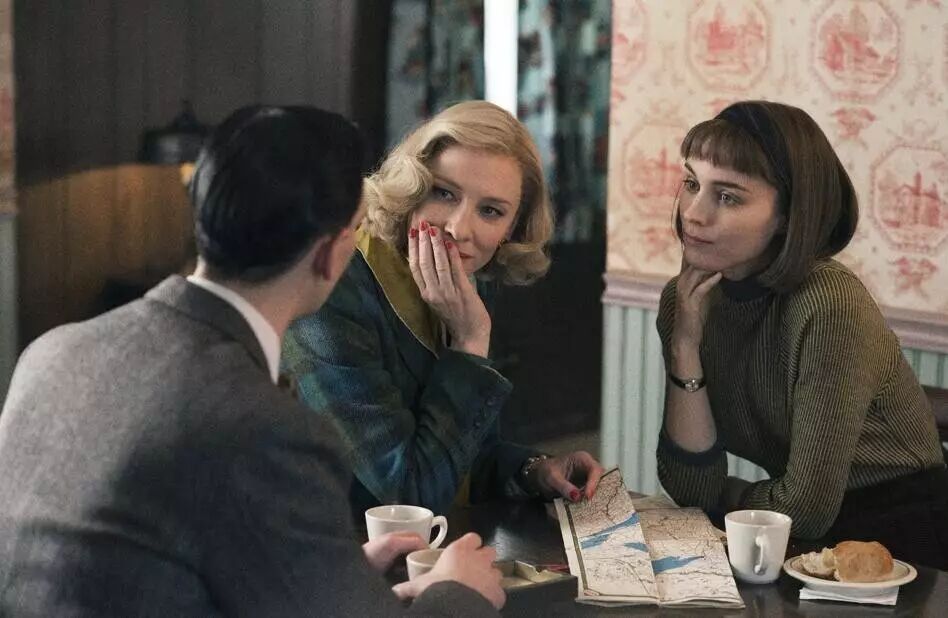 當魯妮·瑪拉飾演的特芮絲在賣場看到凱特·布蘭切特飾演的卡羅爾的一瞬間,兩隻雙眸的緊緊注視,她便知道,她的一生或許與這個金發貴婦都會有著千絲萬縷的聯係。