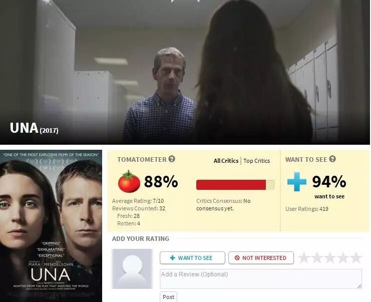 昨日,魯妮·瑪拉、本·門德爾森主演的《烏娜》終於宣布即將發行上映。