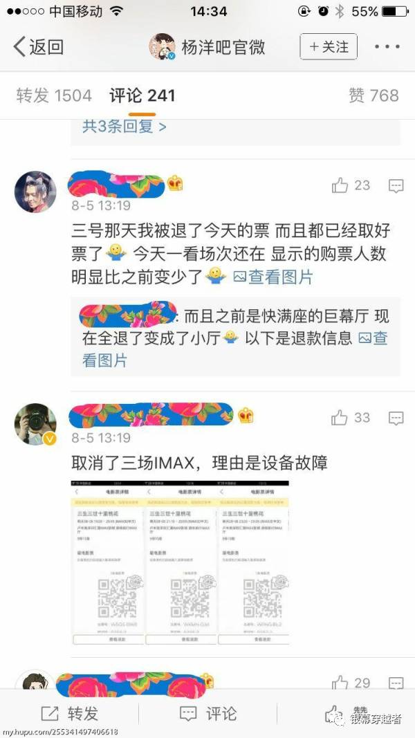 其中被頂到首位的網友"浣熊要打盹"稱:"影院在一般情況下,是歡迎粉絲來鎖場的,因為平時大盤冷,能賣出去一張是一張,你來影院買的爆米花飲料加上票錢勉強能讓別人賺上一點,總比機器空置在那裏好。但如果有同期大熱影片一票難求,而排片卻被另一部不怎麼叫座的電影占著,影院是不是就很苦惱,很氣憤了?可以看出來《三生三世》粉絲鎖場鎖得極其惡劣,一兩張票,鎖住了影院幾百個座位的大廳,一天如果幾場下來,老板得虧多少電費?粉絲鎖場,起碼鎖個二三十張,讓影院能夠勉強維持收支,影院又和後台公司簽訂了排片協議,排片應該不會受影響。劉粉和楊粉妄想用最少的錢辦最多的事,結果斷了影院的財路,你說人家老板氣不氣?"