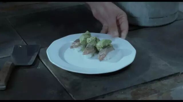 不知道能不能賣得出去,隻敢買半斤三文魚,卻偏偏遇上了一個日本旅行團。情急之下廚師拿出了一直珍藏的醃鯡魚,再配上這麼大一坨芥末。