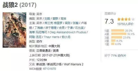 《戰狼》本應該是7月28日0點上映,但就臨上映前突然調到了27號的晚上。