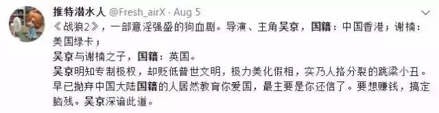說電影拍的好的人很多,但也有不少人質疑吳京用主旋律炒作,強行和愛國主義捆綁。