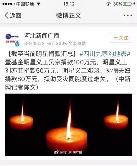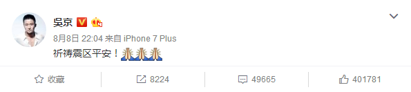 九寨溝7.0級地震,吳京第一時間發微博表示關心。