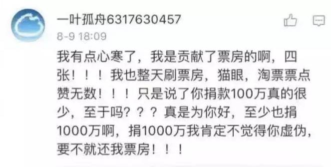 電影票是觀眾自願買的,吳京捐不捐款那也得憑人自願吧。