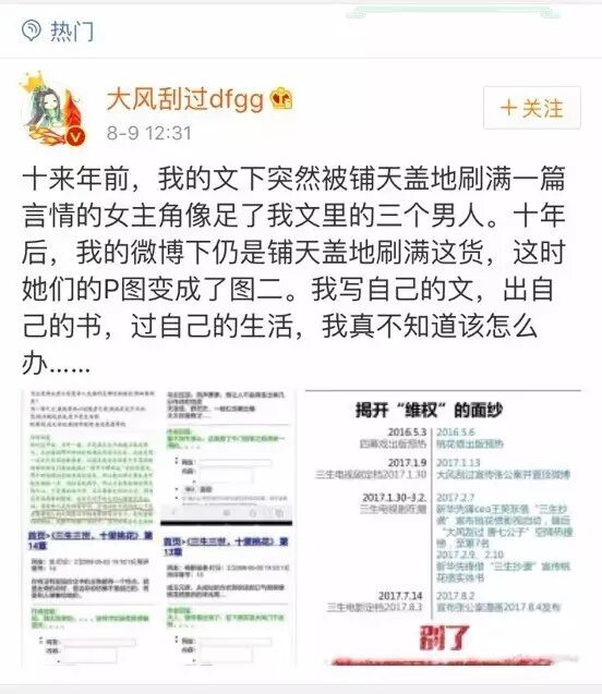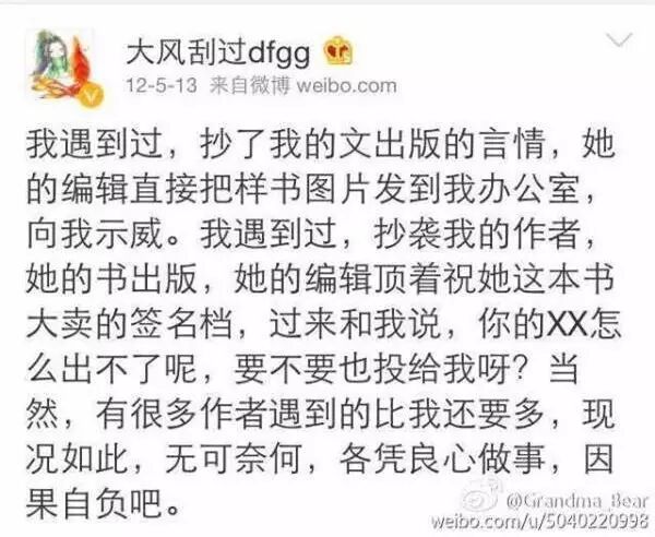 而當年大風還發過這樣一則微博,說有人抄了自己的言情,還發樣書給自己....