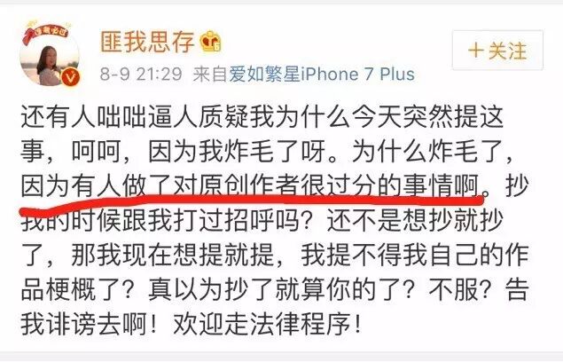 雖然沒有指名道姓,網文屆大大匪我存思從昨天下午開始也發了好幾條微博感慨。"有些事真是令人鄙視"。