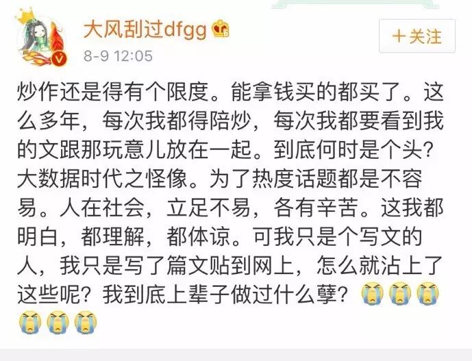 幾個小時後,《桃花債》的原作大風刮過也發聲了!又是問"我到底上輩子造了什麼孽"...又說"我真的不知道該怎麼辦了"...對於"陪炒",一把辛酸淚。