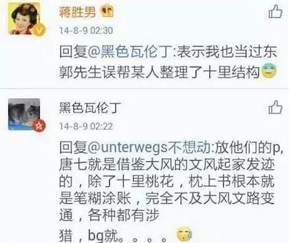 幫唐七整理過三生架構的著名編劇蔣勝男,也在微博評論裏表示自己當過東郭先生。