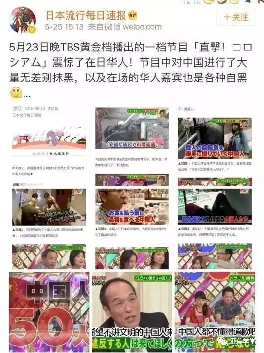 2016年5月23日晚日本TBS電視台的一檔名為《直擊!角鬥場!!直言不諱!2小時特別節目》的綜藝節目上,專門探討了中國的種種問題,並且還邀請在日本的華人參加討論。