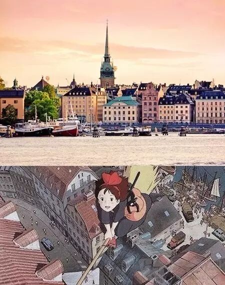 而片中琪琪所在的這個靠海的城鎮就在瑞典的斯德哥爾摩,因為這個城市沿海而建,所以也被稱為"水之都",城市建築低矮且方正,有很濃厚的北歐風情~