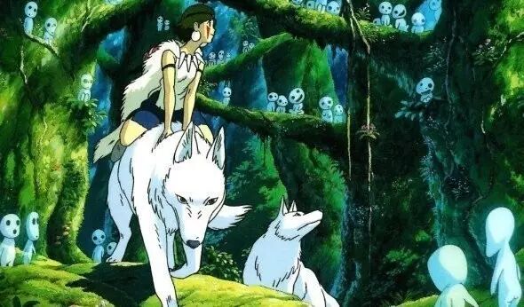 熟悉宮崎駿的胖友肯定知道,老爺子的影片一直致力於人與自然主題的探討,所以很多場景都自然氣息濃厚,比如這部滿屏都是綠色的《幽靈公主》——