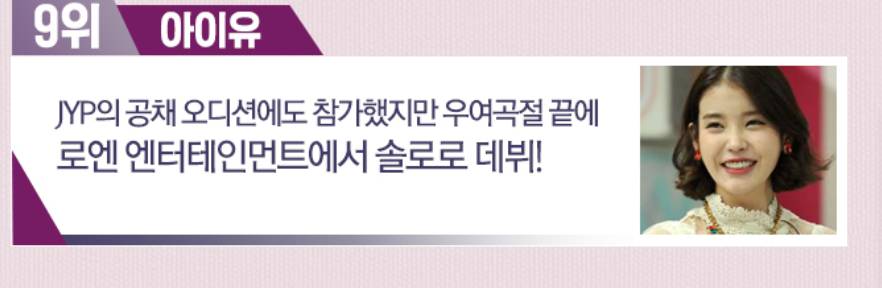 4.IU曾經有去過JYP選秀但遺憾落選的經曆想必大家都知道,樸振英也因為此事多次表達了自己的後悔之情。國民妹妹的嗓音也是放在哪裏都會發光的。