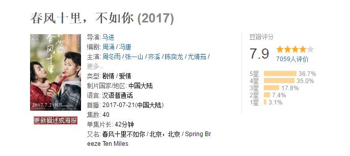 一場春夢過後,你不知道是夢遺,還是眼淚。看遍現在的國產青春劇,摸著胸口說,《春風十裏,不如你》,在劇情上已經算是良心了,雖然周冬雨演技依舊脫離不了自己的標簽,雖然國產青春片仍然秉承著賣情懷的弊病,但是它至少沒有了傳統的爛俗劇情,也至少還給我們了一個,還算正常的青春時光。