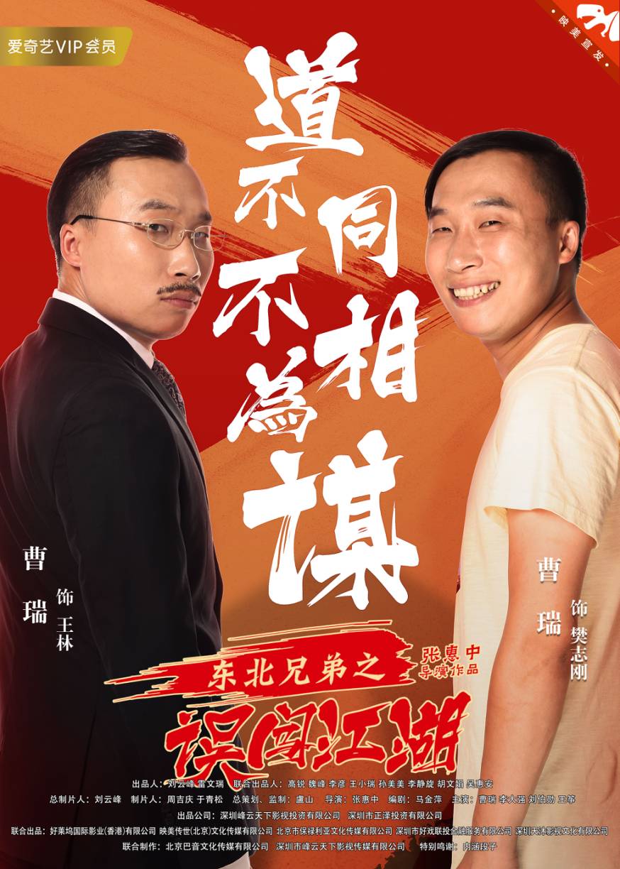 由峰雲天下影業、深圳正澤投資出品,好萊塢影業、映美傳媒、保祿利亞傳媒、好戲聯投、天沐影視聯合出品,巴音傳媒製作,映美傳媒獨家宣發,張惠中執導,馬金萍編劇,曹瑞、李大強、劉伯勳、聶霸虎、高德軍出演的東北喜劇電影《東北兄弟之誤闖江湖》,近日首度曝光了五位主演的角色海報,濃濃的暖色調和富有張力的喜劇造型,瞬間引起粉絲們的熱切期盼,大家紛紛表示五位主演和《山炮進城》裏的主演一一撞臉,雙方"爆表顏值"有一拚。