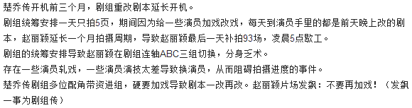 讓人痛惜的是,我們現在看到的,大多數劇都有這樣的問題。這不僅影響觀眾的觀感,對那些兢兢業業的工作人員,也是有苦說不出。一直有傳聞說《楚喬傳》的帶資演員亂加戲,對其他演員造成困擾。