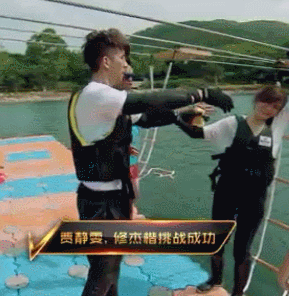 賈靜雯女神全程"小女生狀",一著急就喊"把拔"(她和修傑楷互稱"把拔"汗"瑪麻"),修傑楷全程real man的帶著她完成任務。