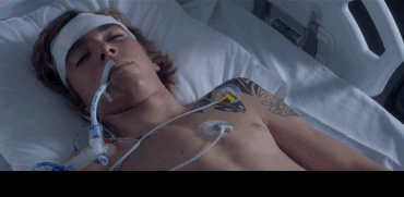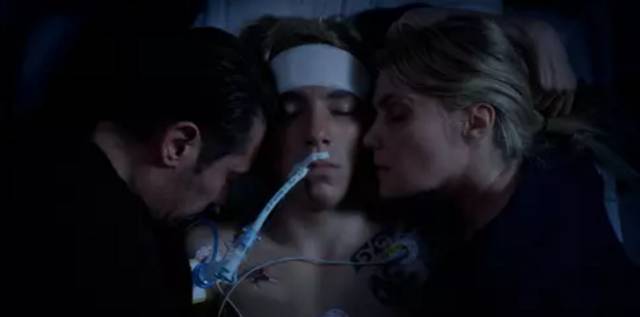 父母倆同意移植後,走進重症監護室,在男主的身體兩邊躺下。