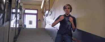 好不容易追到後,"埋伏"在樓梯口假裝偶遇。但是藏不住的大喘氣早就暴露了自己。