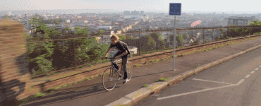 廣場上四目相對,一見鍾情。男主騎車追趕著乘坐電軌的女生。