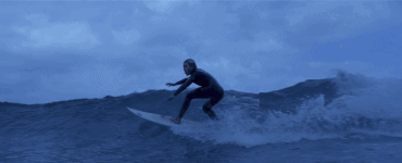 電影的開場,他和朋友們去海邊衝浪。海麵浪濤洶湧,男主自由靈巧的穿梭其中。
