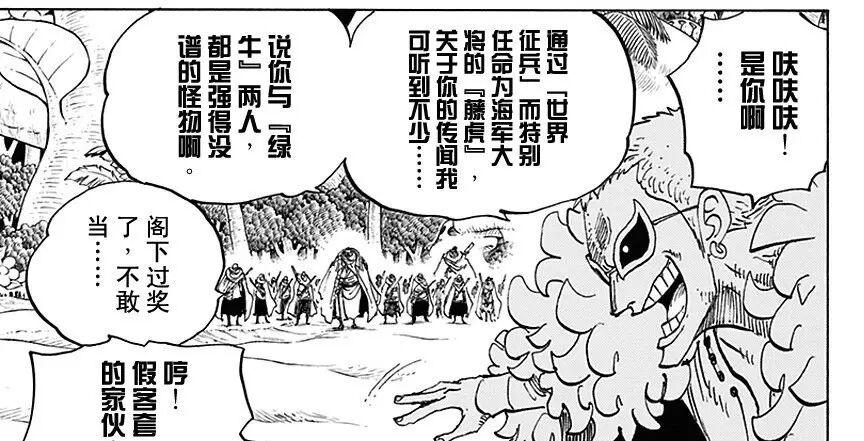 說起綠牛這一人設最早在漫畫中被提及,是第713話中多佛朗明哥在德雷斯羅薩篇中與藤虎的對話。
