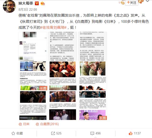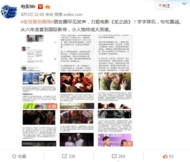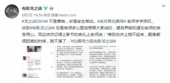 老戲骨劉佩琦朋友圈發聲之後,@電影龍之戰官博及時對其進行回應,相關博主也對此事進行關注,一時間在微博端掀起熱議。