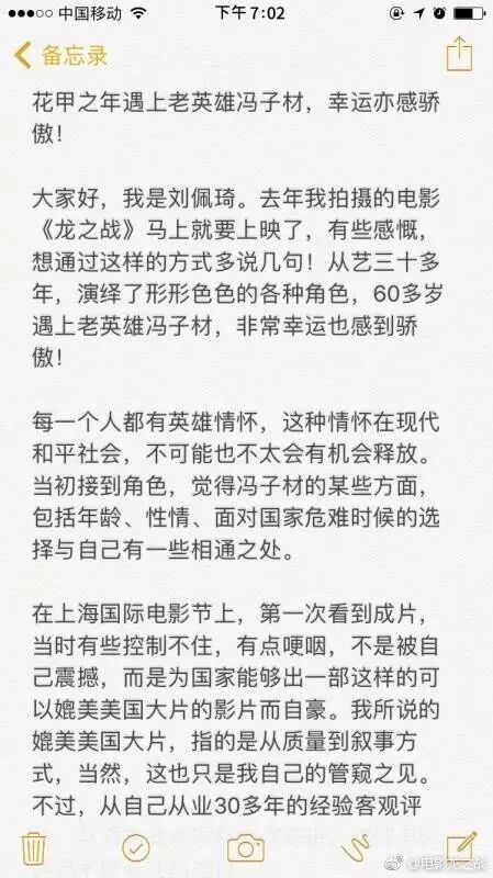 網友們也是被老戲骨的真誠、對演繹事業的用心和執著深深打動,紛紛為老戲骨點讚!並對劉佩琦口中的電影《龍之戰》給予了高度的關注和熱情。