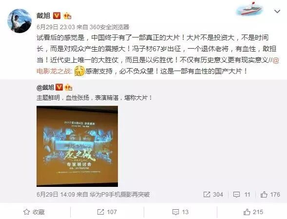 此前對於這部正能量熱血電影,無論是演員還是圈內大佬、軍事專家也都是鼎力支持,六小齡童、成龍、史航、知名軍事專家戴旭等都通過微博發聲的形式助力。