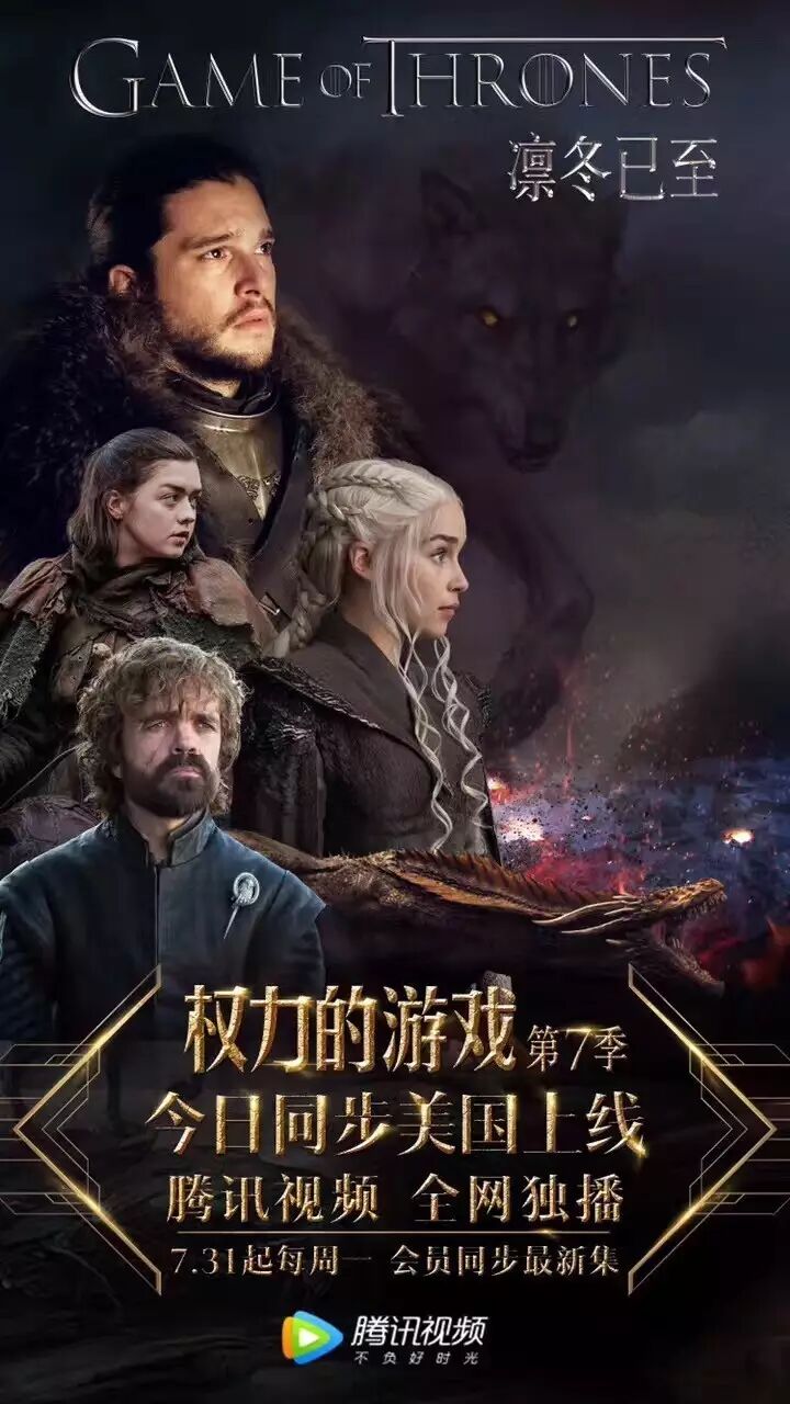 找不到1080p高清官方資源的人們,在經曆了各種"不小心"劇透之後,《權力的遊戲》第七季今天(7月31日)正式登陸騰訊視頻,9點首播,首播日前2集免費播出,會員更可以獨享與美國同步更新的最新集第3集。也就是說:你可以一次看足三集!之後騰訊視頻將保持每周都和美國同步更新最新集,最新集會員獨享,當然之前播出的都將免費觀看。
